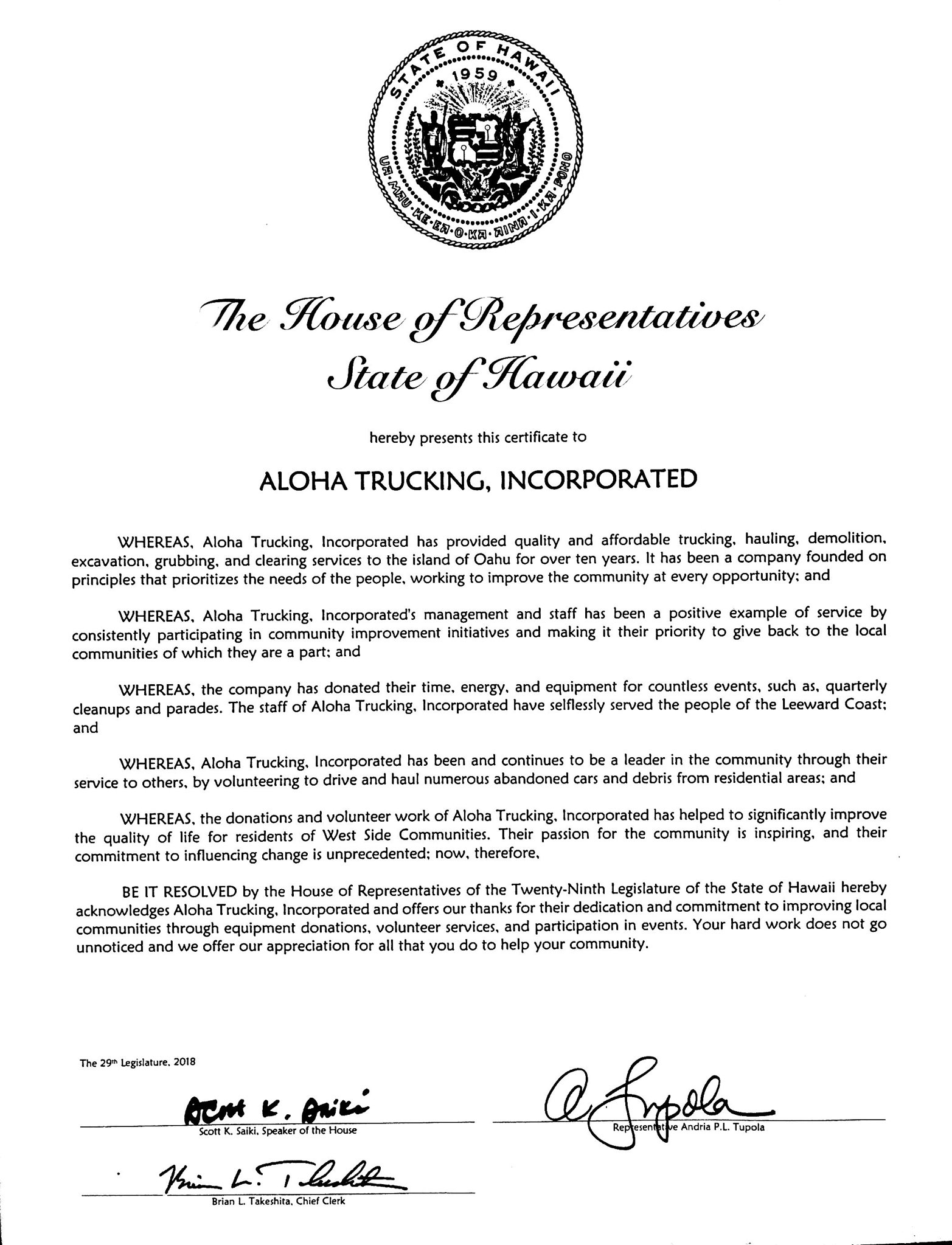 ALOHA TRUCKING